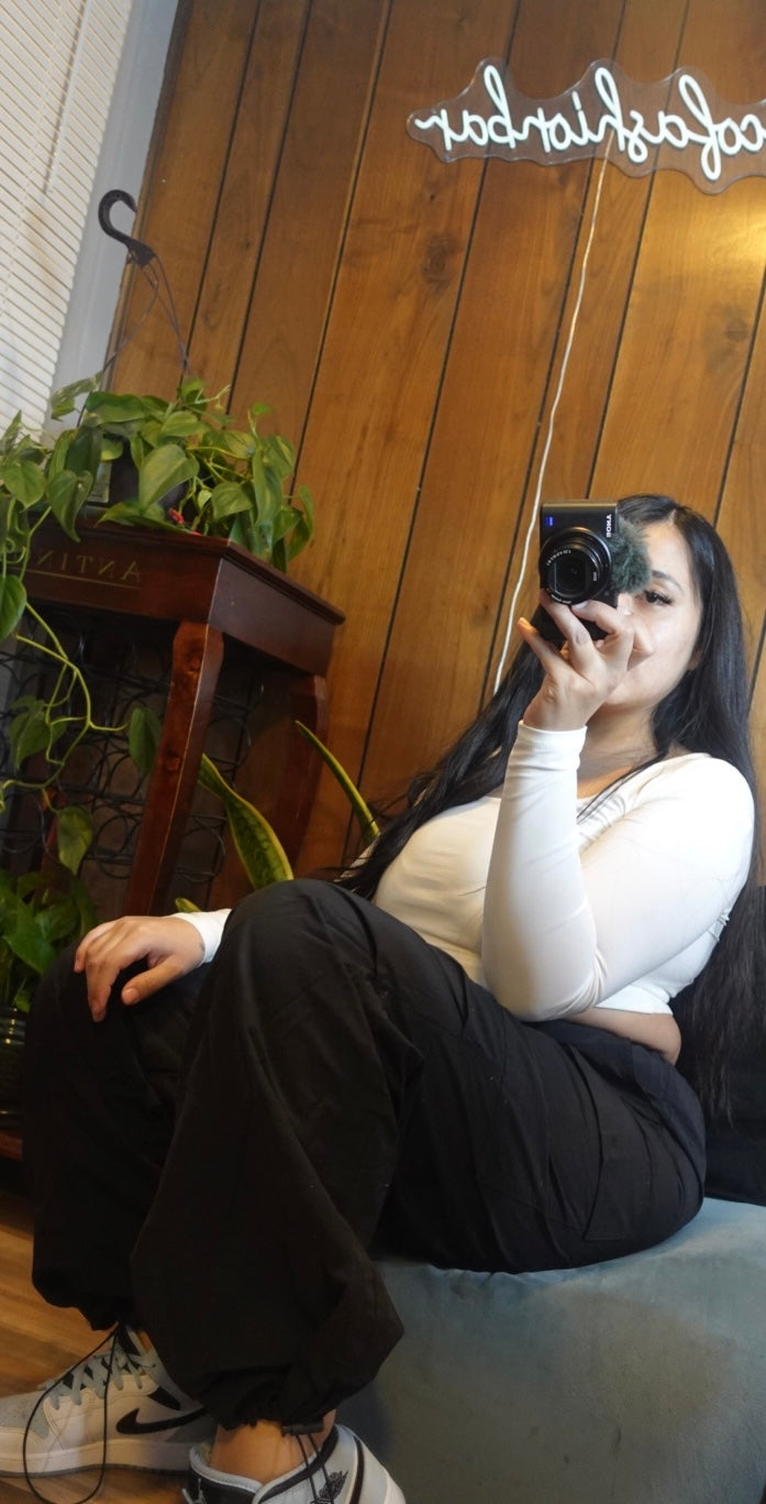 Black parachute pants